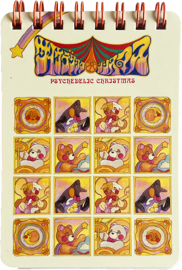 音楽付き絵本『サイケデリック・クリスマス』からメモ帳が登場しました。 キャラクターたちがデザインされた可愛いメモ帳です。 A7サイズ。