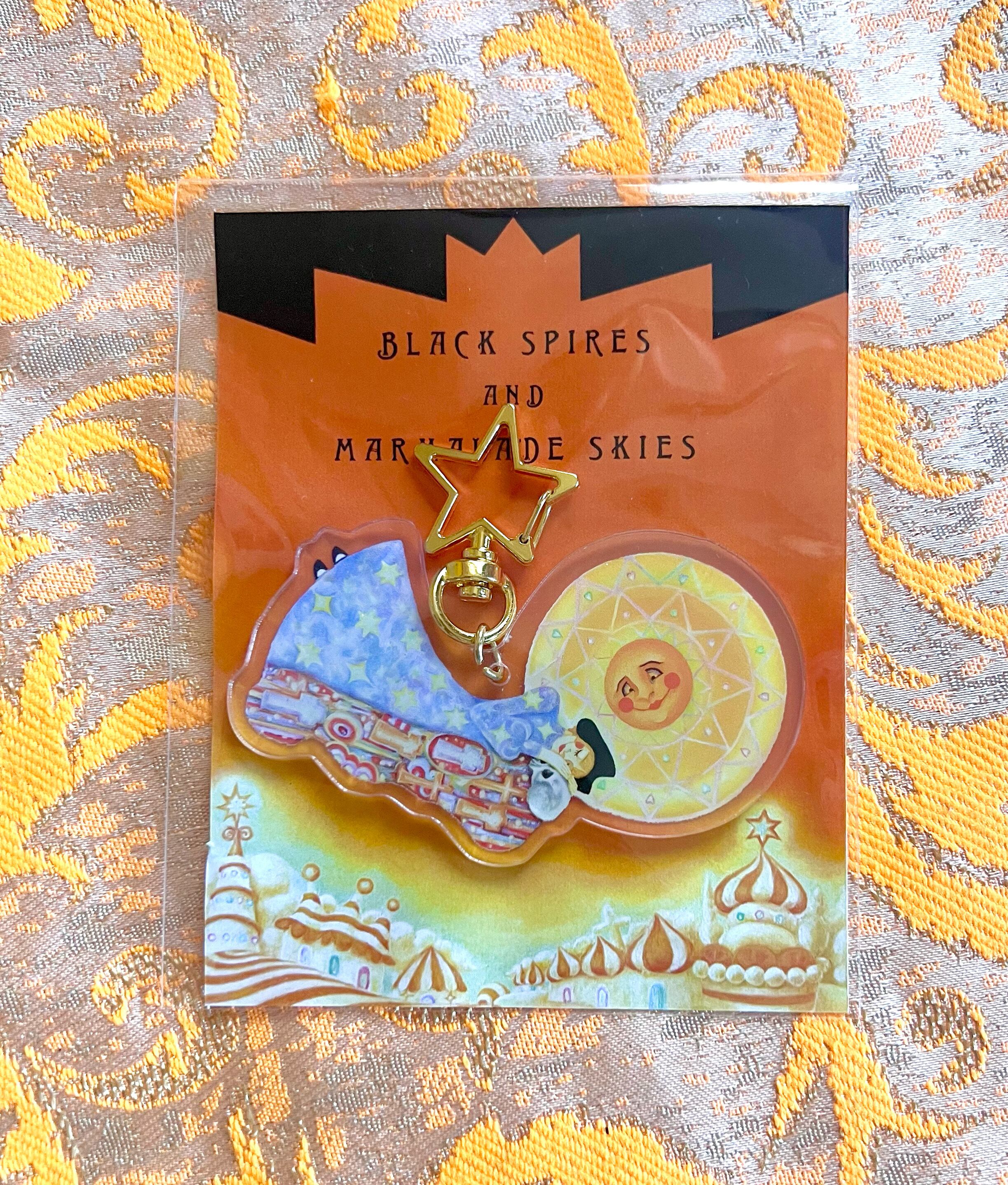 《黒い尖塔とマーマレードの空》シリーズのアクリルキーホルダー。