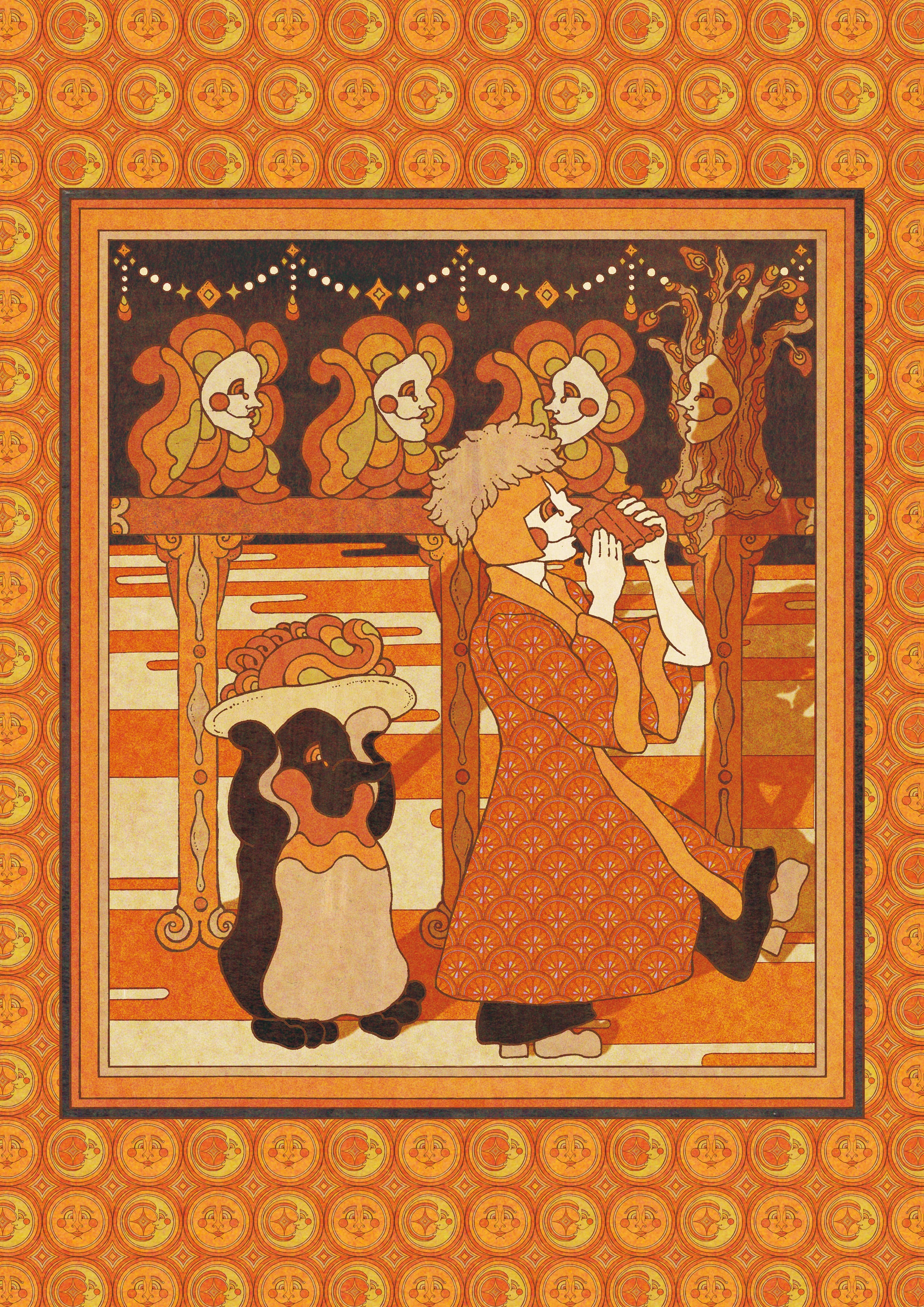 灰村マオが2023年にドイツで発表した《オレンジ・ダイアモンド・ランド 》のサイン付きアートプリント。